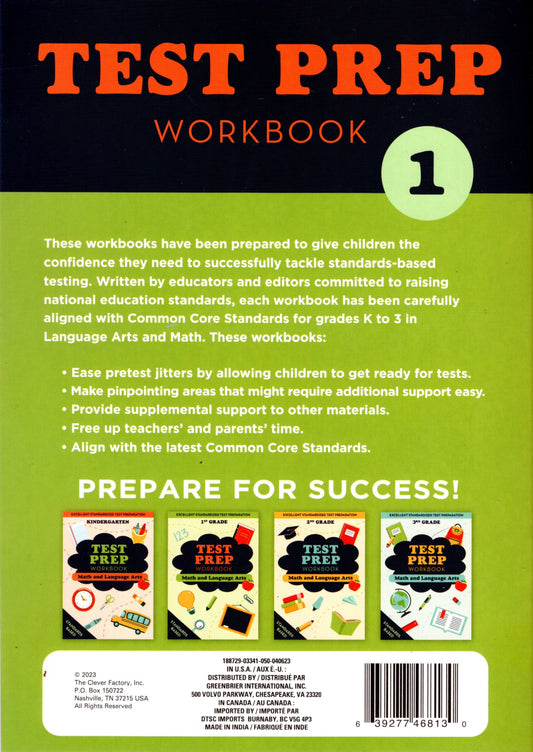 Kindergarten Math & Language Arts - Test Preparation Standards Based Excellent - Workbook