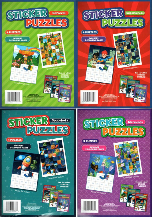 Activity Books: Sticker Puzzles - Mermaids, Space-Bots, Superheroes, Carnival