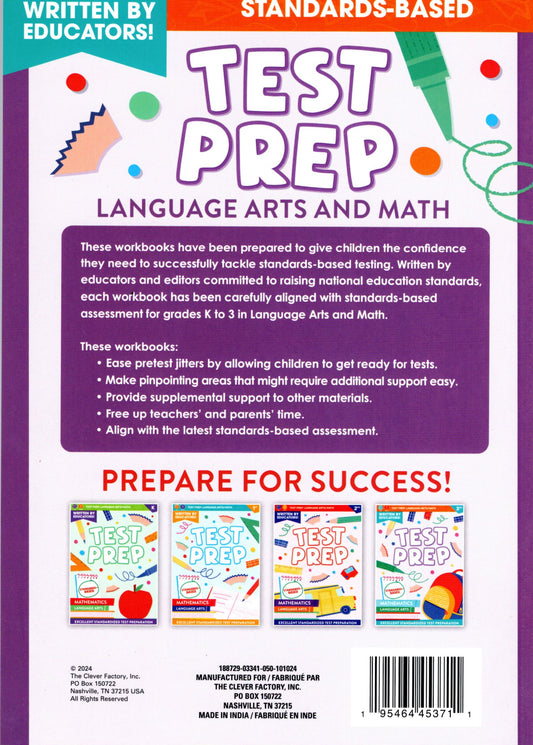 Kindergarten Grade Math & Language Arts Test Prep Workbook v3