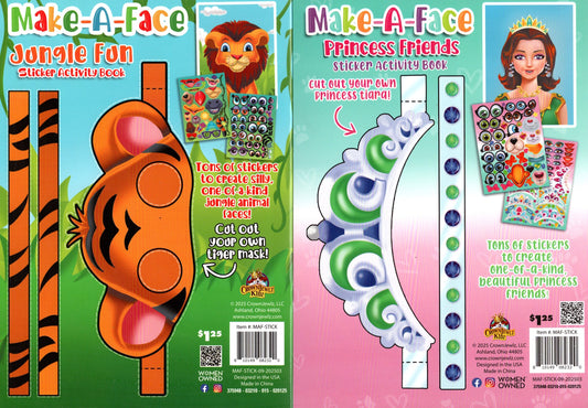 Make-A-Face - Princess Friends & Jungle Fun - Stickers Includes - Sticker Activity Book