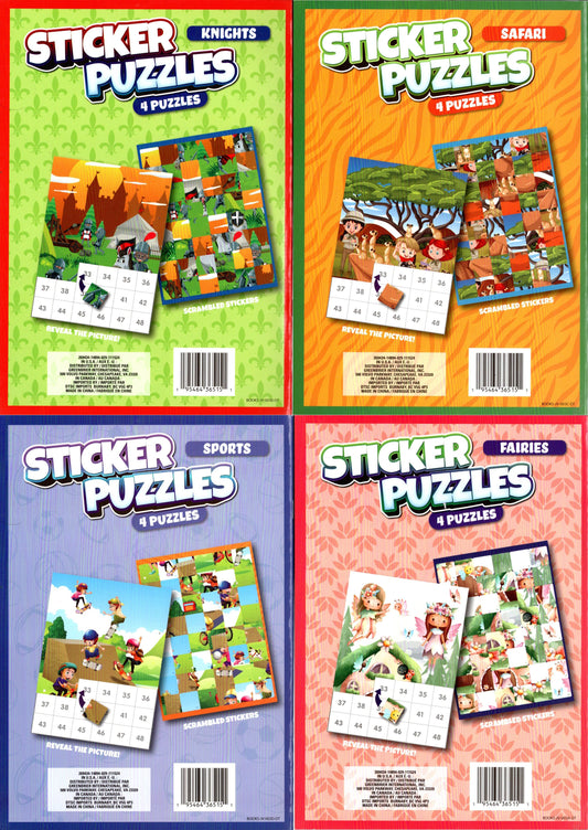 Activity Books for Kids: Sticker Puzzles - Knights, Safari, Sports and Fairies (Set of 4 Books)