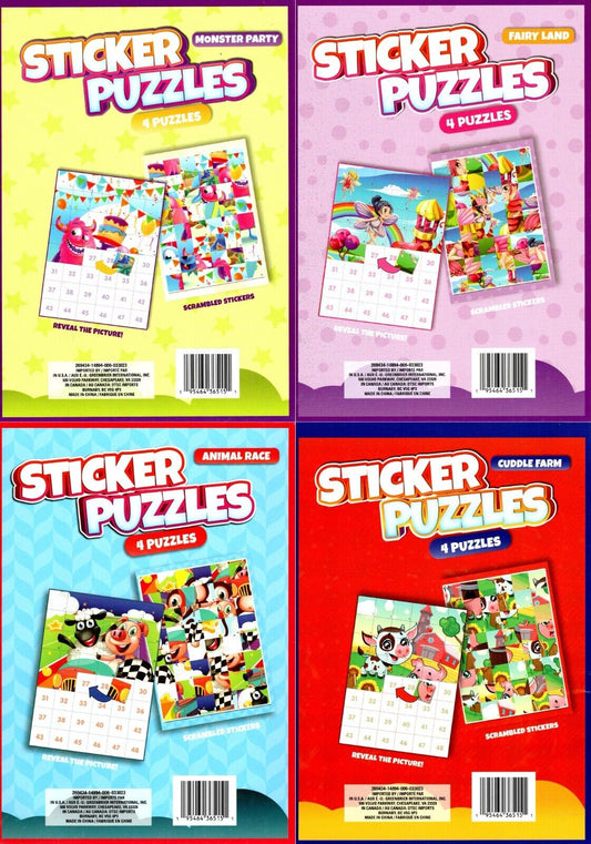 Activity Books for Kids: Sticker Puzzles - Fairy Land, Animal Race, Cuddle Farm