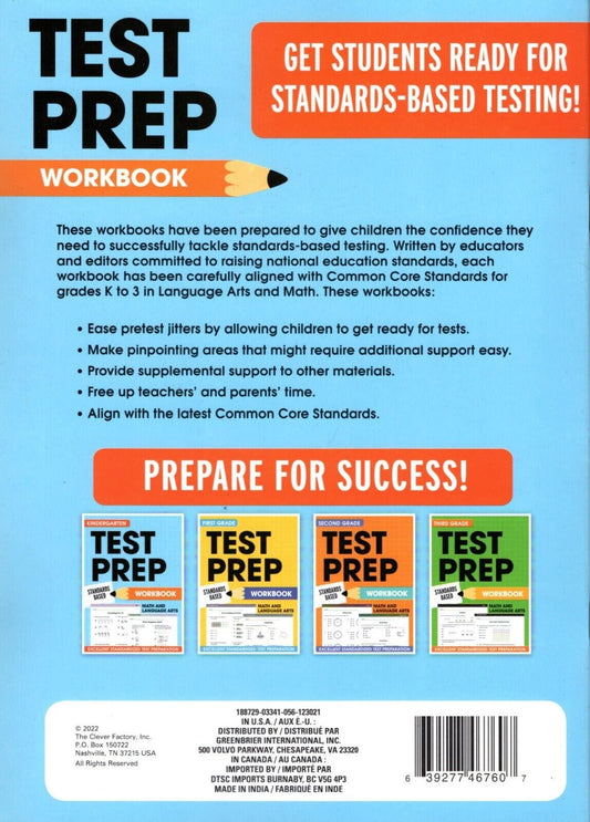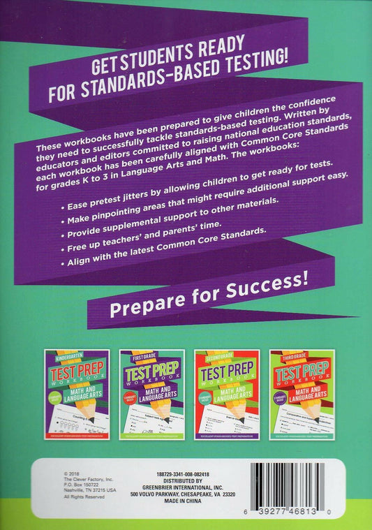 Kindergarten Grade Math & Language Arts Test Prep Workbook