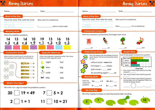 First Grade & Second Grade - Morning Starters Educational Workbooks - Set of 2