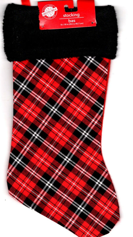 Christmas Holiday 18 Inch Classic Red and Black Plush Felt/Velvet Stockings