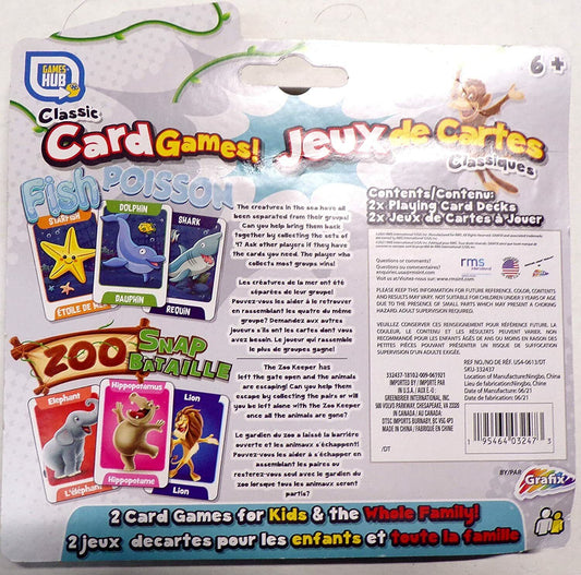 Granfix Old Maid & Happy Families + Fish & Zoo Bataille - Cards Game (Set of 4)