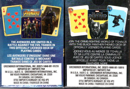 Marvel Black Panther & Avengers Playing Cards Sealed Deck of 52 Cards (Set of 2)
