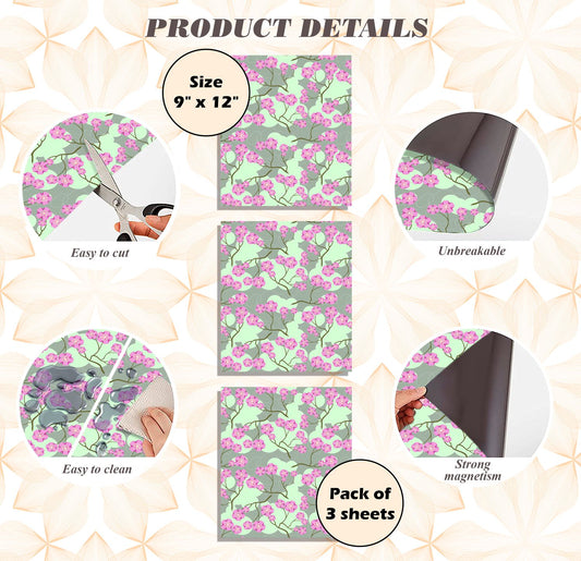 Magnetic Locker Wallpaper (Full sheet Magnetic) - Remove & Reuse Decorative Vinyl - Pack of 3 Sheets (Flowers) (vg 031)