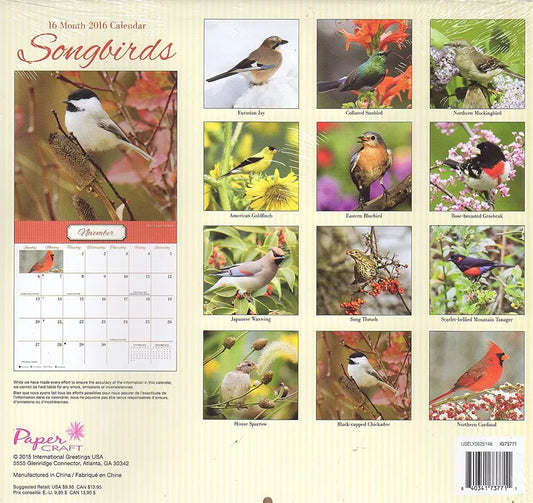2016 Beautiful Birds 16-Month Wall Calendar By Sandy Clough with 2-Year Planner