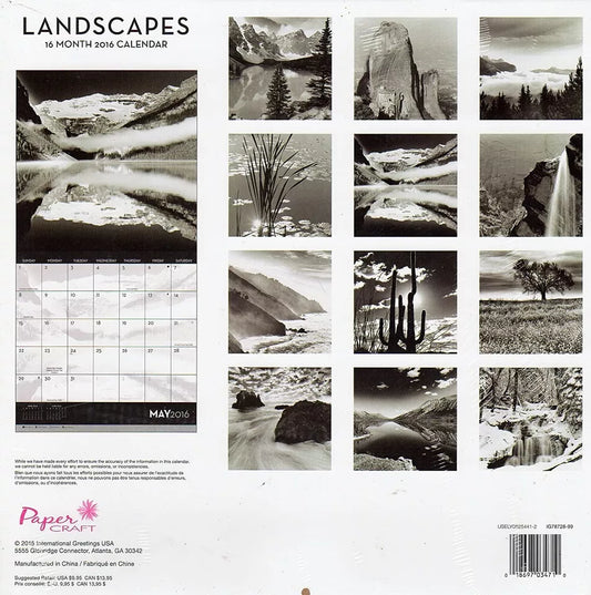 2016 Landscapes (Black & White) - 16 Month Wall Calendar