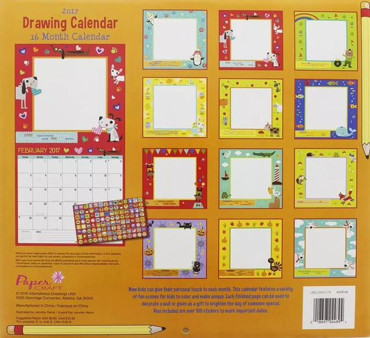2017 Monthly Wall Calendar - Drawing - Kids Children Boys Girls
