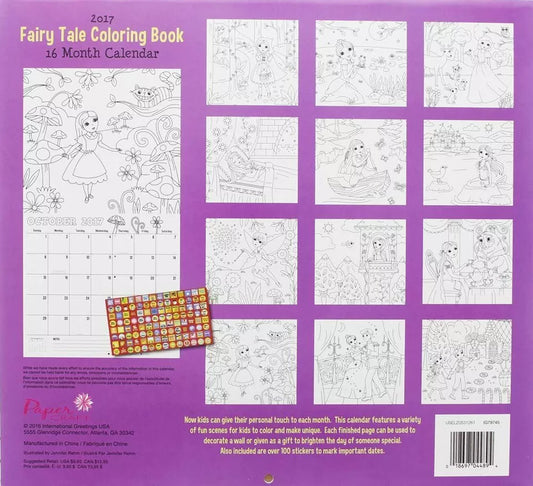 2017 Monthly Wall Calendar - Coloring - Fairy Tale - Kids Children Girls