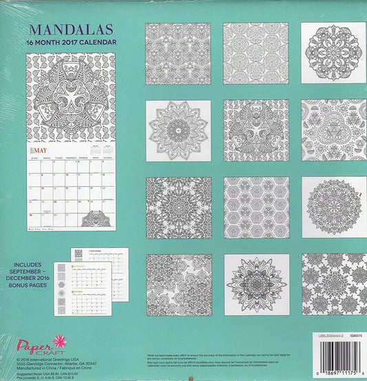 2017 Adult Coloring Calendar -Mandalas