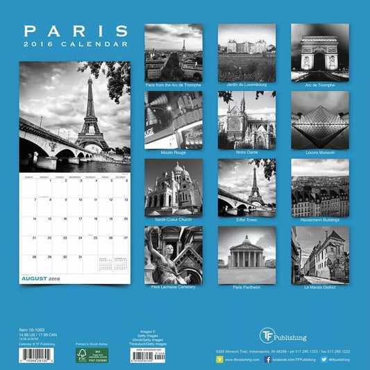 1 X 2016 World Landmarks 16 Month Wall Calendar