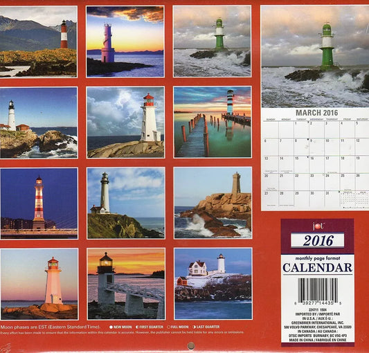 2016 12 Month Lighthouses Wall Calendar 12x12
