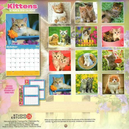 Kittens - 16 Month 2018 Wall Calendar Planner Organizer