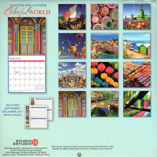 Colorful World - 16 Month 2018 Wall Calendar Planner Organizer