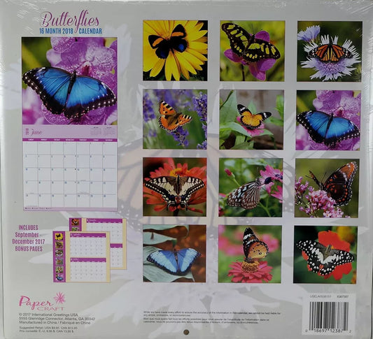 2018 Butterflies Color Monthly Wall Calendar, 12 x 22