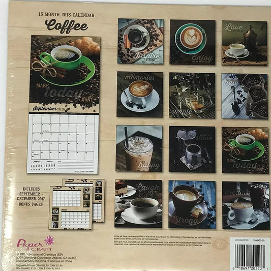 16 Month 2018 Adult Coloring Book Calendar and Color Pencils Set