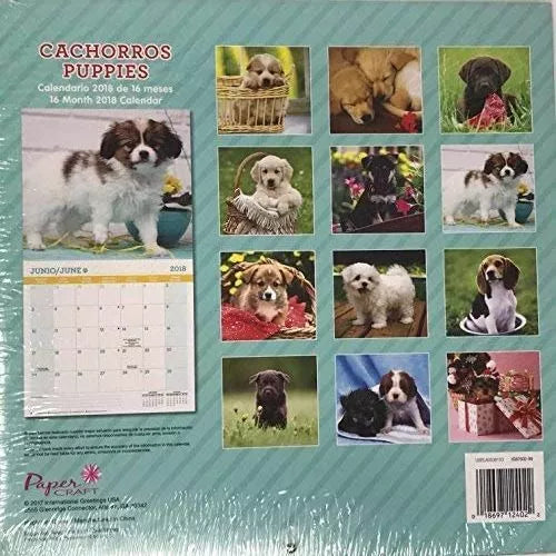 Cachorros / Puppies Bilingual 16 Month 2018 Calendar