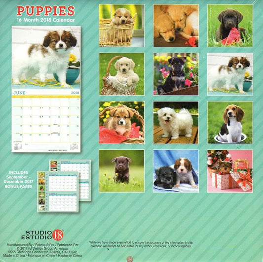 Puppies - 16 Month 2018 Wall Calendar Planner Organizer