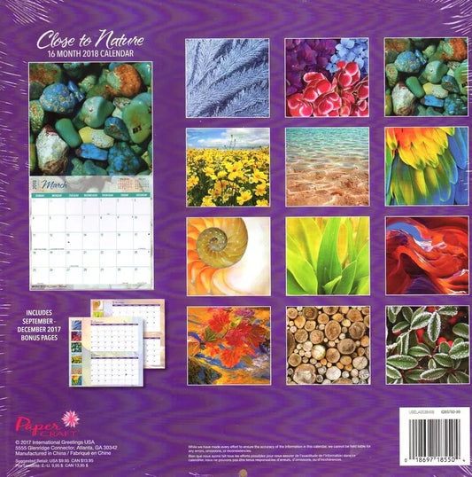 Close to Nature - 16 Month 2018 Wall Calendar Scheduler Organizer