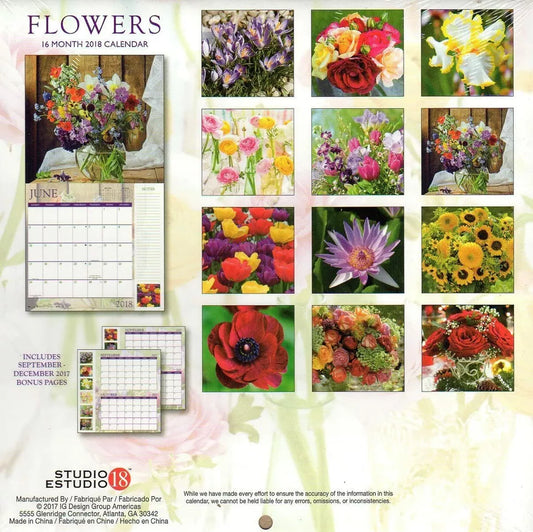 Flowers - 16 Month 2018 Wall Calendar Planner Organizer
