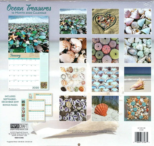 Ocean Treasures - 16 Month 2020 Wall Calendar - with 100 Reminder Stickers