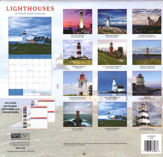Lighthouses - 16 Month 2020 Wall Calendar - with 100 Reminder Stickers