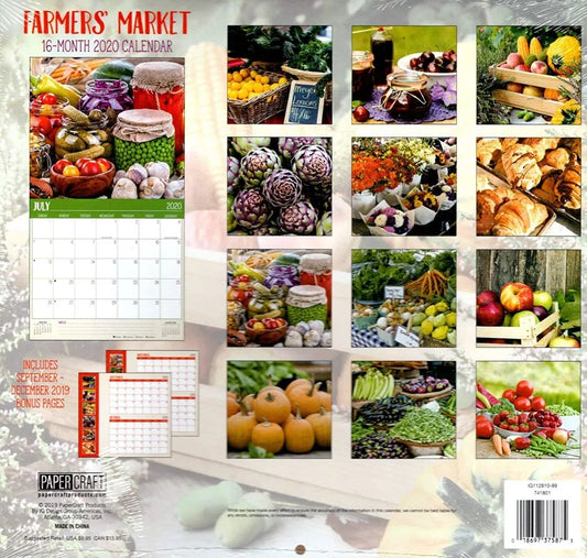 Farmers Market - 16 Month 2020 Wall Calendar - with 100 Reminder Stickers