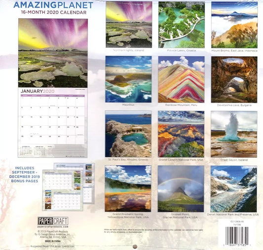 Amazing Planet - 16 Month 2020 Wall Calendar - with 100 Reminder Stickers