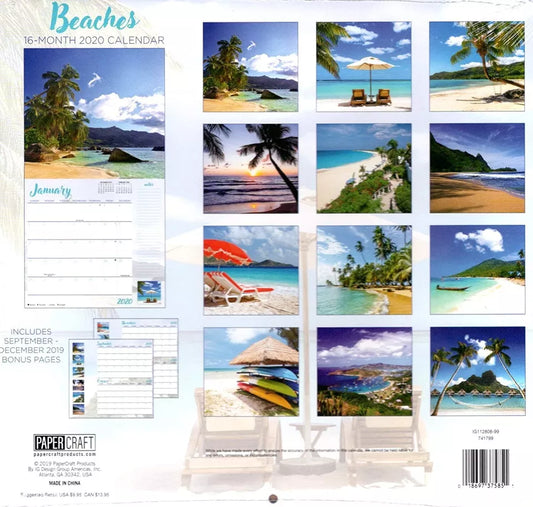 Beaches - 16 Month 2020 Wall Calendar - with 100 Reminder Stickers