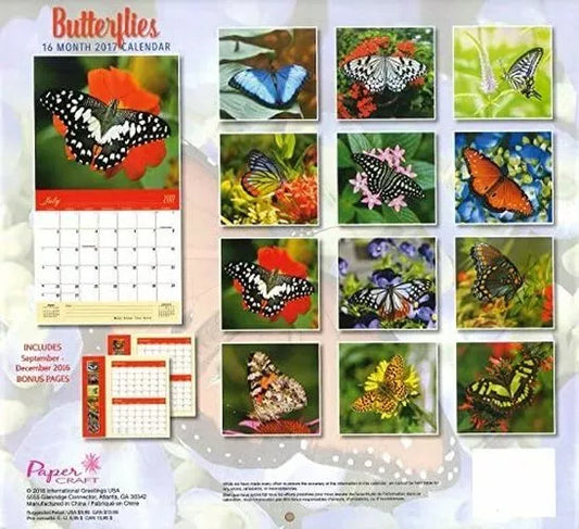 Butterflies 2017 Scheduler Planner Wall Calendar (16 Month) 12 x 11