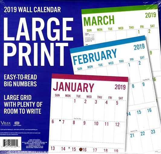 Vista Large Print - 12 Month 2019 Wall Calendar - Big Blocks Easy to Read + 120