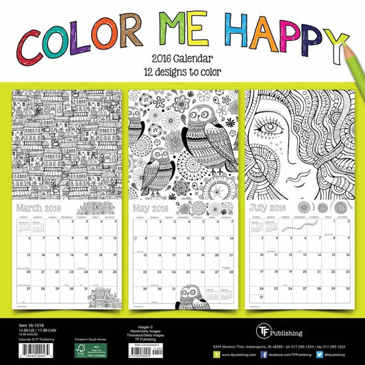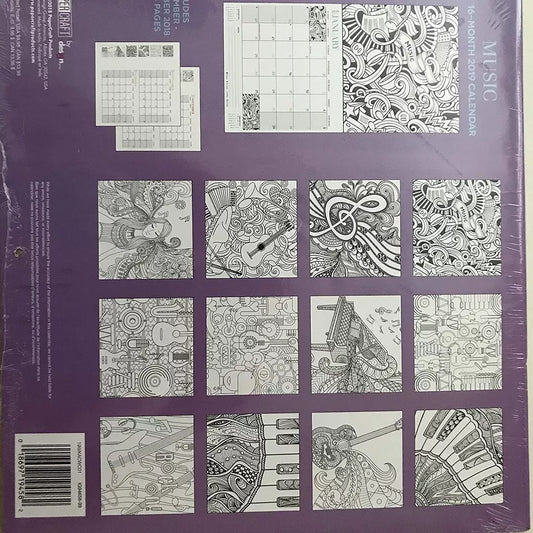 2019 Coloring for Adults Finding Solace Music 16 mo Wall Calendar