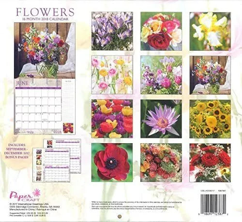 16 Month 2019 Wall Calendar - Flowers - with 120 Stickers