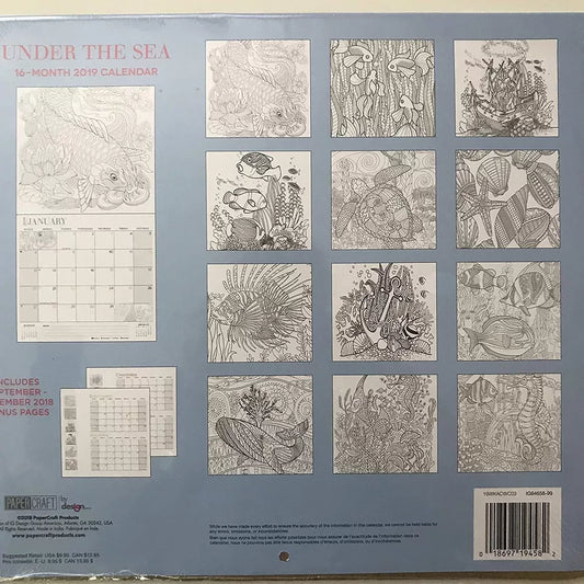 2019 Coloring for Adults Finding Solace Under The Sea 16 mo Wall Calendar