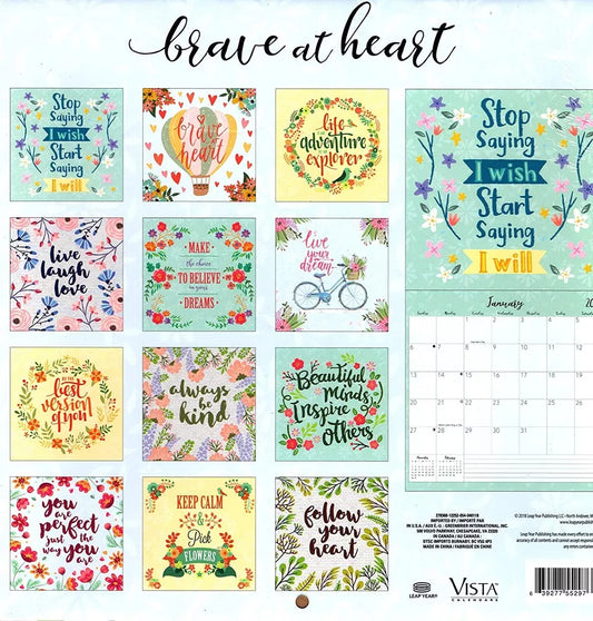 VISTA 2019 Brave at Heart - 16 Month Wall Calendar + 120 Reminder Stickers
