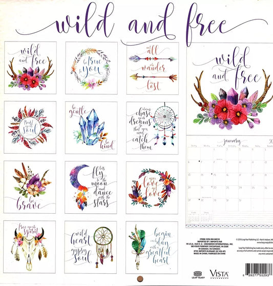 Vista 2019 Wild and Free - 16 Month Wall Calendar + 120 Reminder Stickers