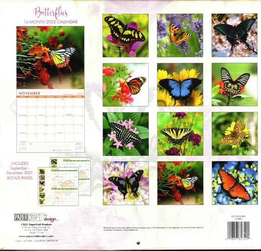 2022 16 Month Wall Calendar Linen Paper Texture - Butterflies v2