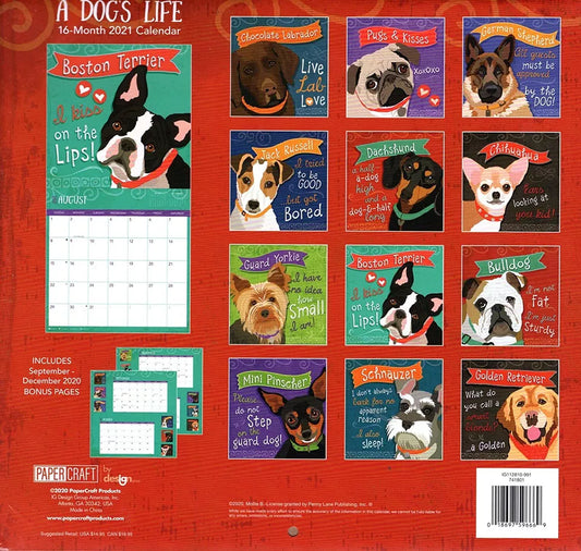 2021 16 Month Wall Calendar - A Dogs Life - with 100 Reminder Stickers