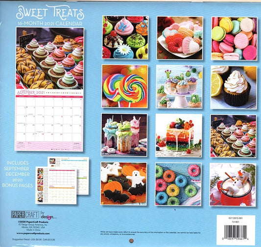 2021 16 Month Wall Calendar - Sweet Treats - with 100 Reminder Stickers