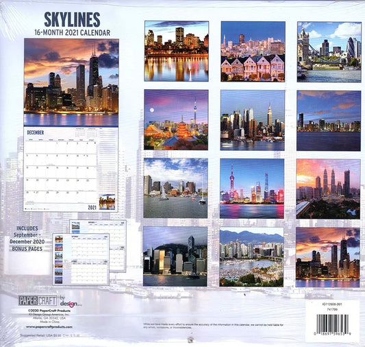2021 16 Month Wall Calendar - Skylines - with 100 Reminder Stickers