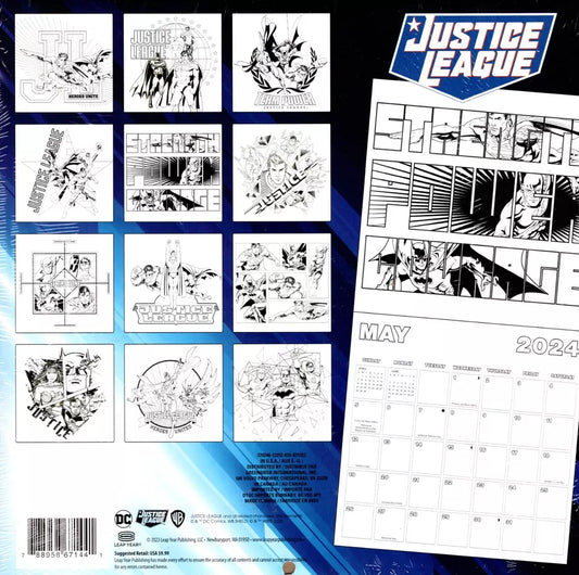 DC Justice League - 16 Month 2024 Wall Calendar (12 Pages to Color)