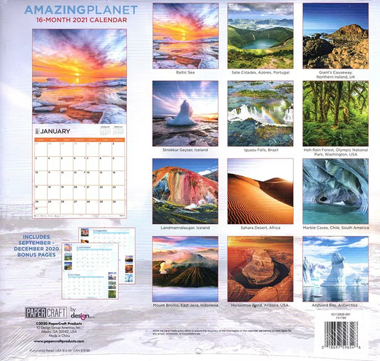 2021 16 Month Wall Calendar - Amazing Planet - with 100 Reminder Stickers