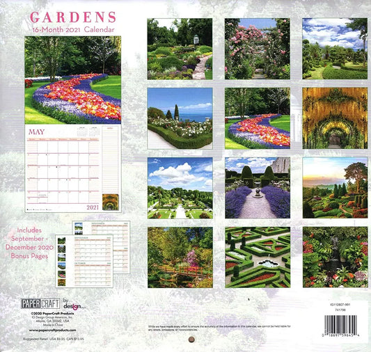 2021 16 Month Wall Calendar - Gardens - with 100 Reminder Stickers