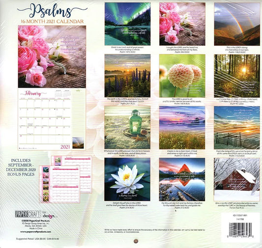 2021 16 Month Wall Calendar - Psalms - with 100 Reminder Stickers