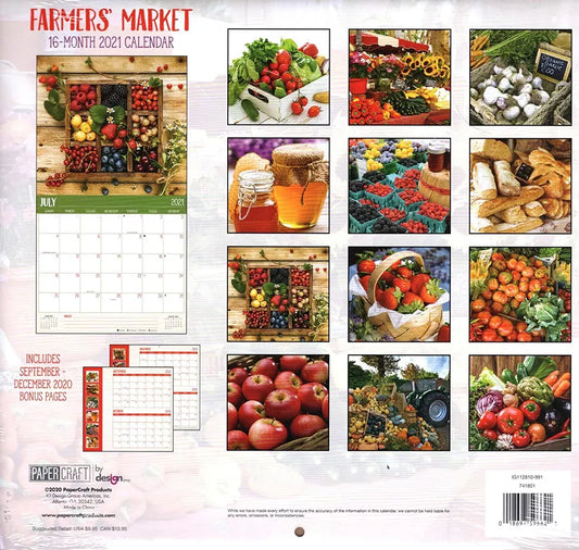 2021 16 Month Wall Calendar - Farmers Market - with 100 Reminder Stickers
