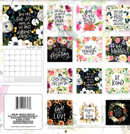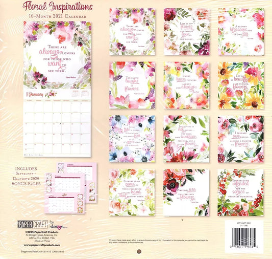 2021 16 Month Wall Calendar - Floral Inspirations - with 100 Reminder Stickers