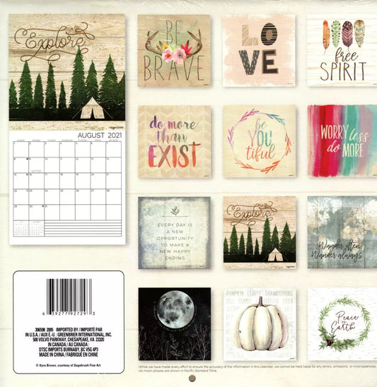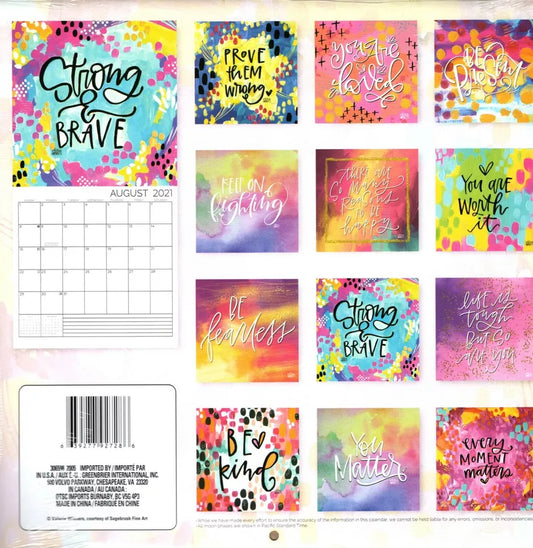 2021 12 Month Wall Calendar - Be Brave - with 100 Reminder Stickers